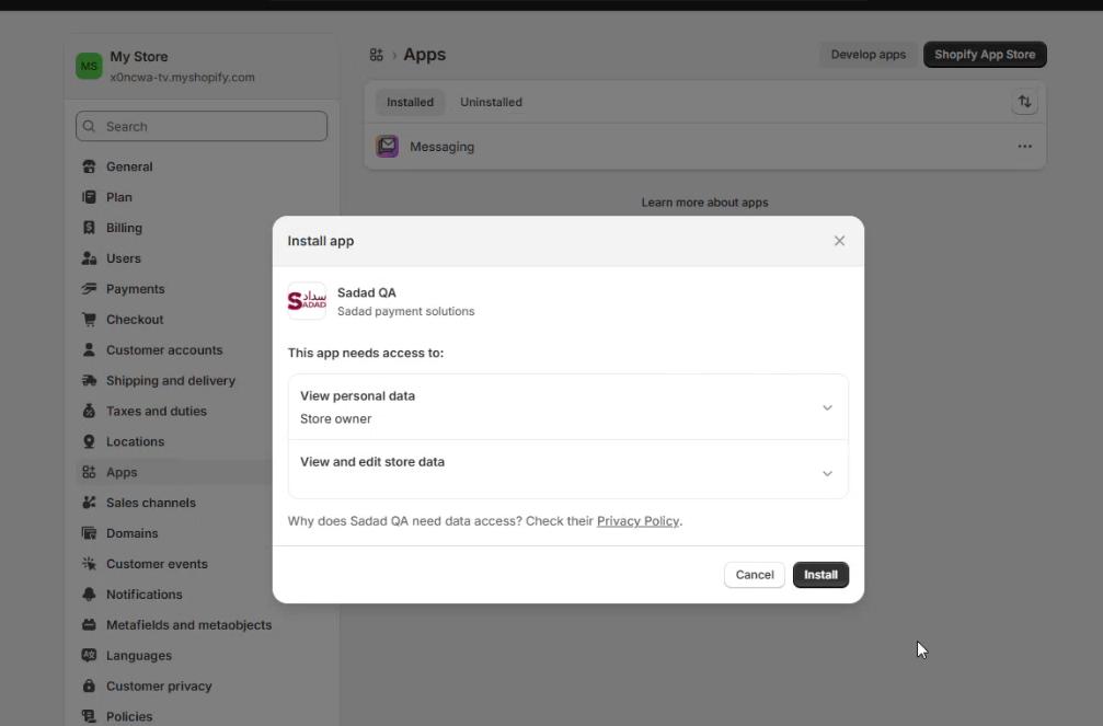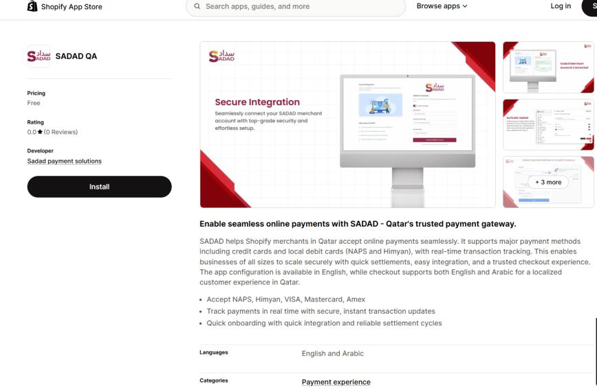 - Navigate to Shopify App Store: https://apps.shopify.com/sadad-qa