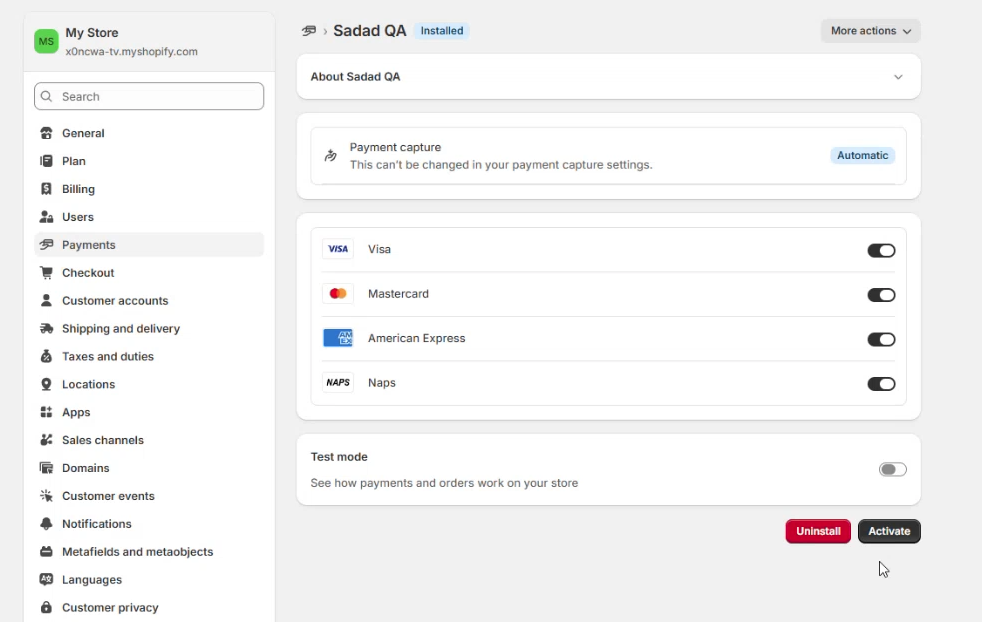 - Prerequisite: The Shopify checkout domain must be whitelisted in your merchant panel under both the test and live key domain settings: {Sadad Merchant ID}.spaycheckout.sadad.qa